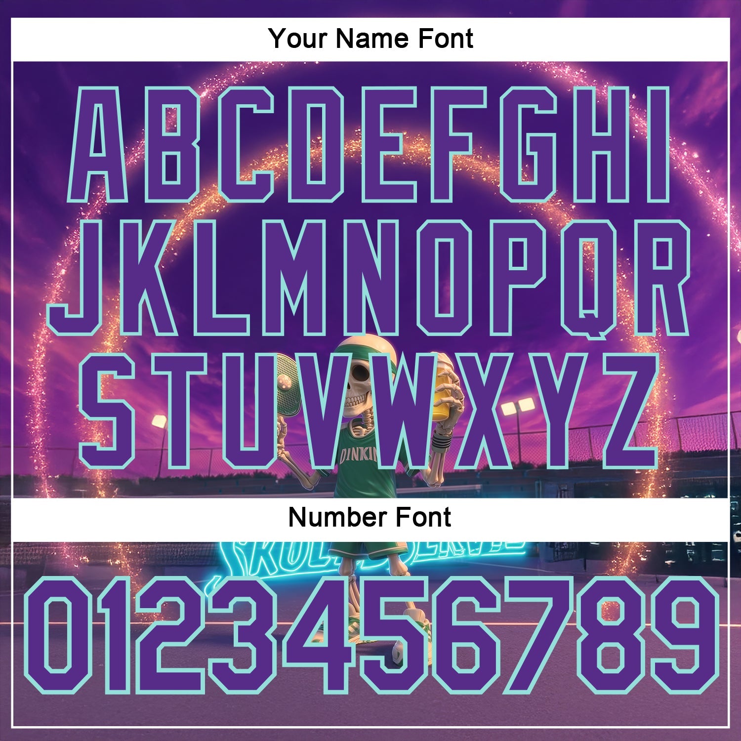 Custom Purple Ice Blue 3D Funny Pickleball Paddles Balls Skeleton Performance T-Shirt