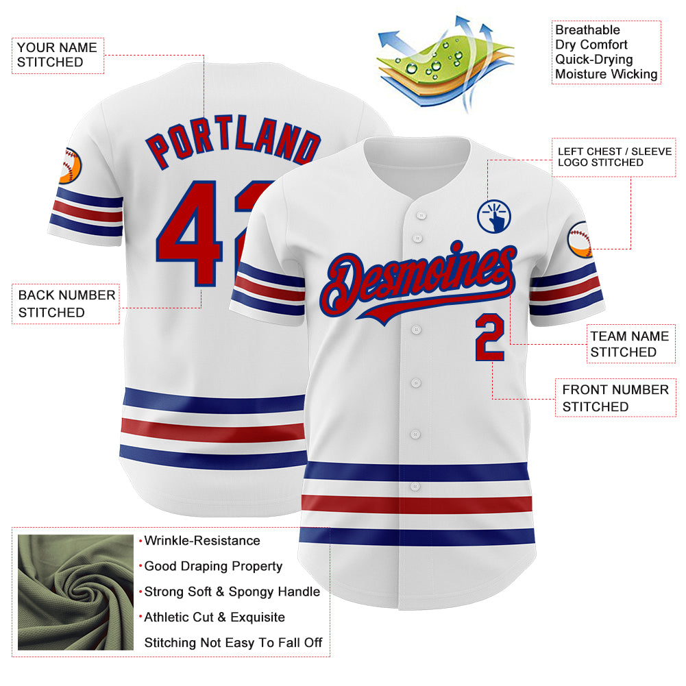 Custom White Red-Royal Line Authentic Baseball Jersey