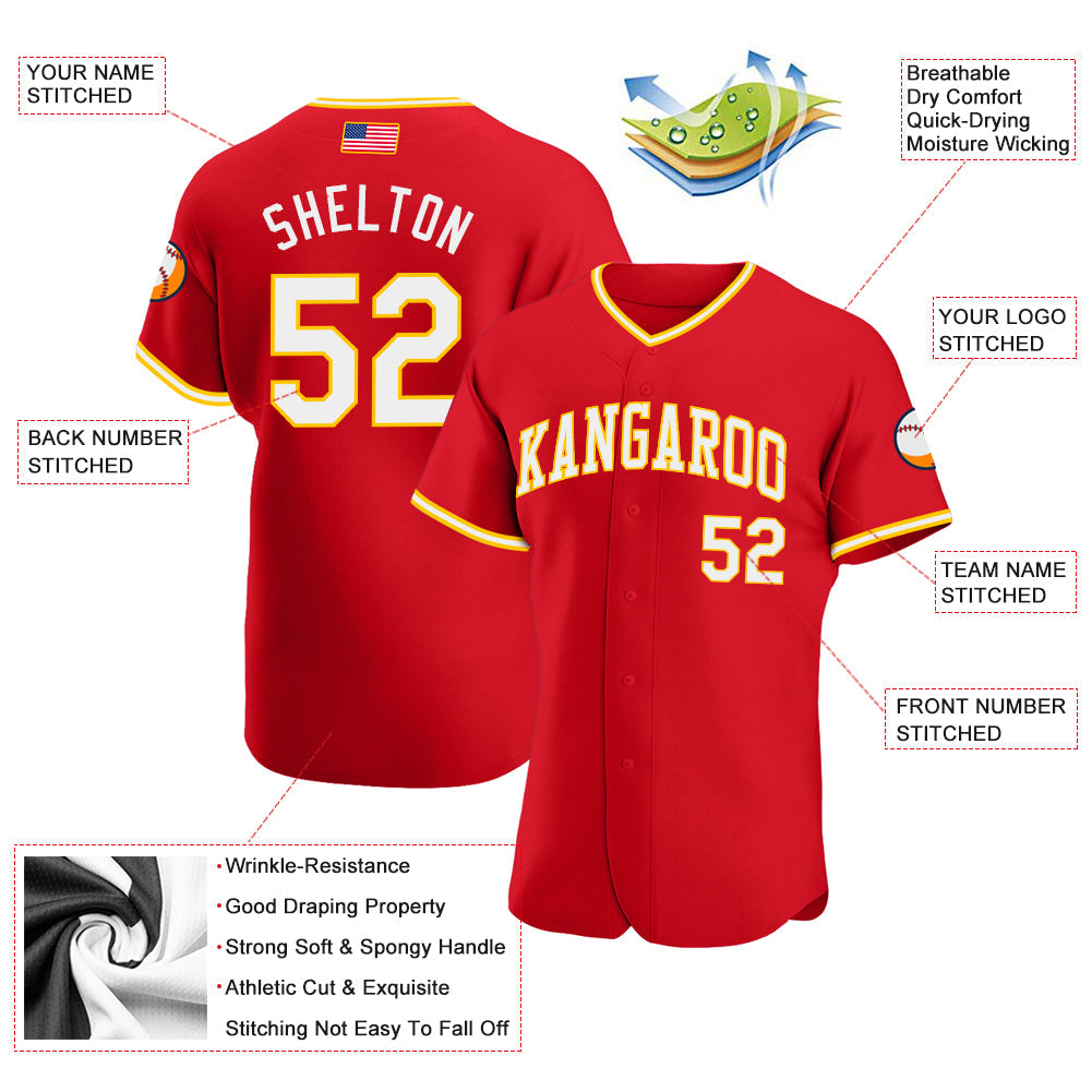 Custom Red White-Gold Authentic American Flag Fashion Baseball Jersey
