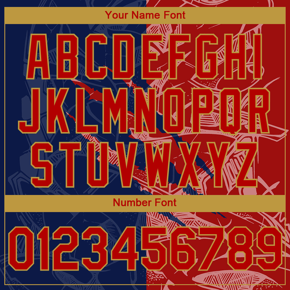 Custom Stitched Graffiti Pattern Red Navy-Old Gold 3D Scratch Sports Pullover Sweatshirt Hoodie