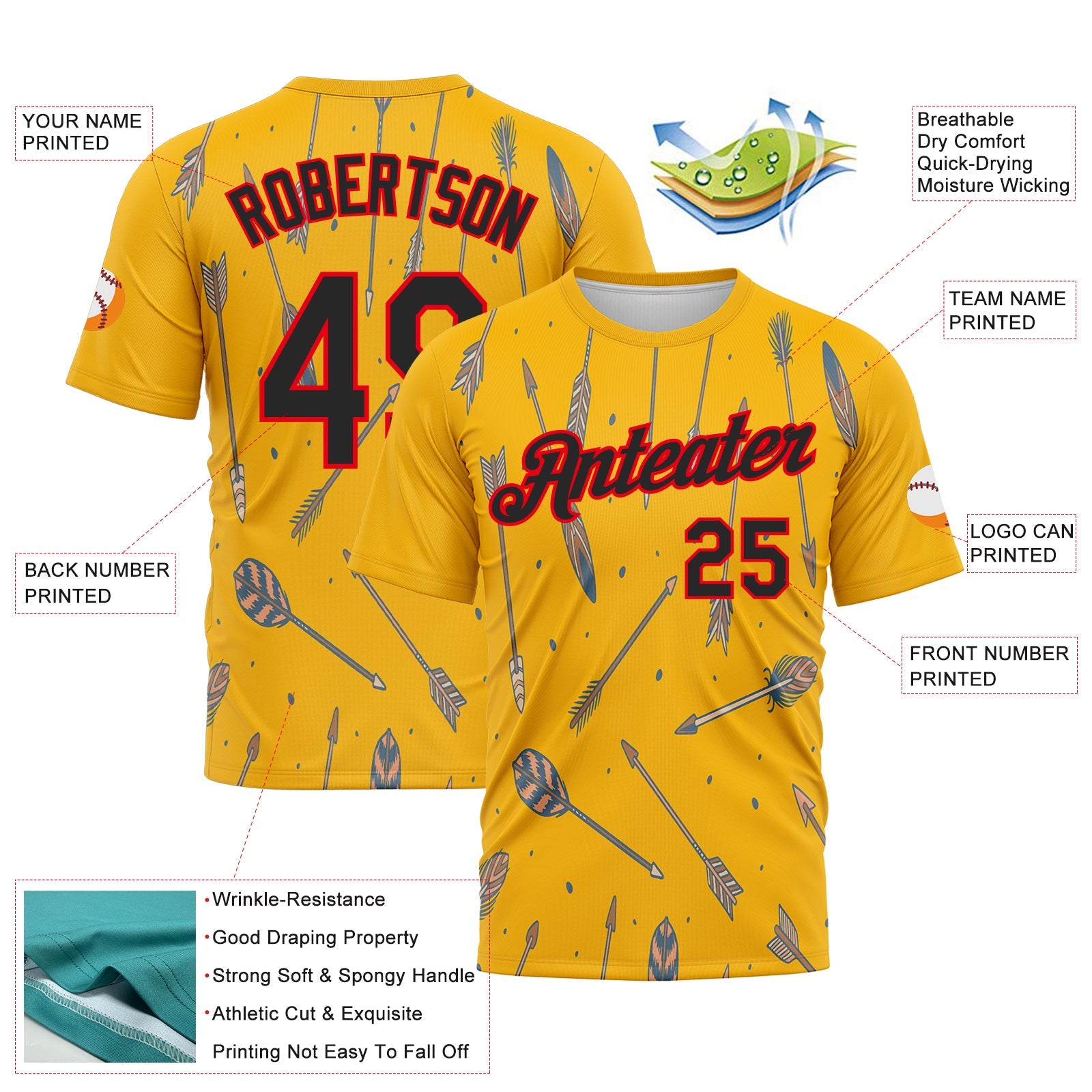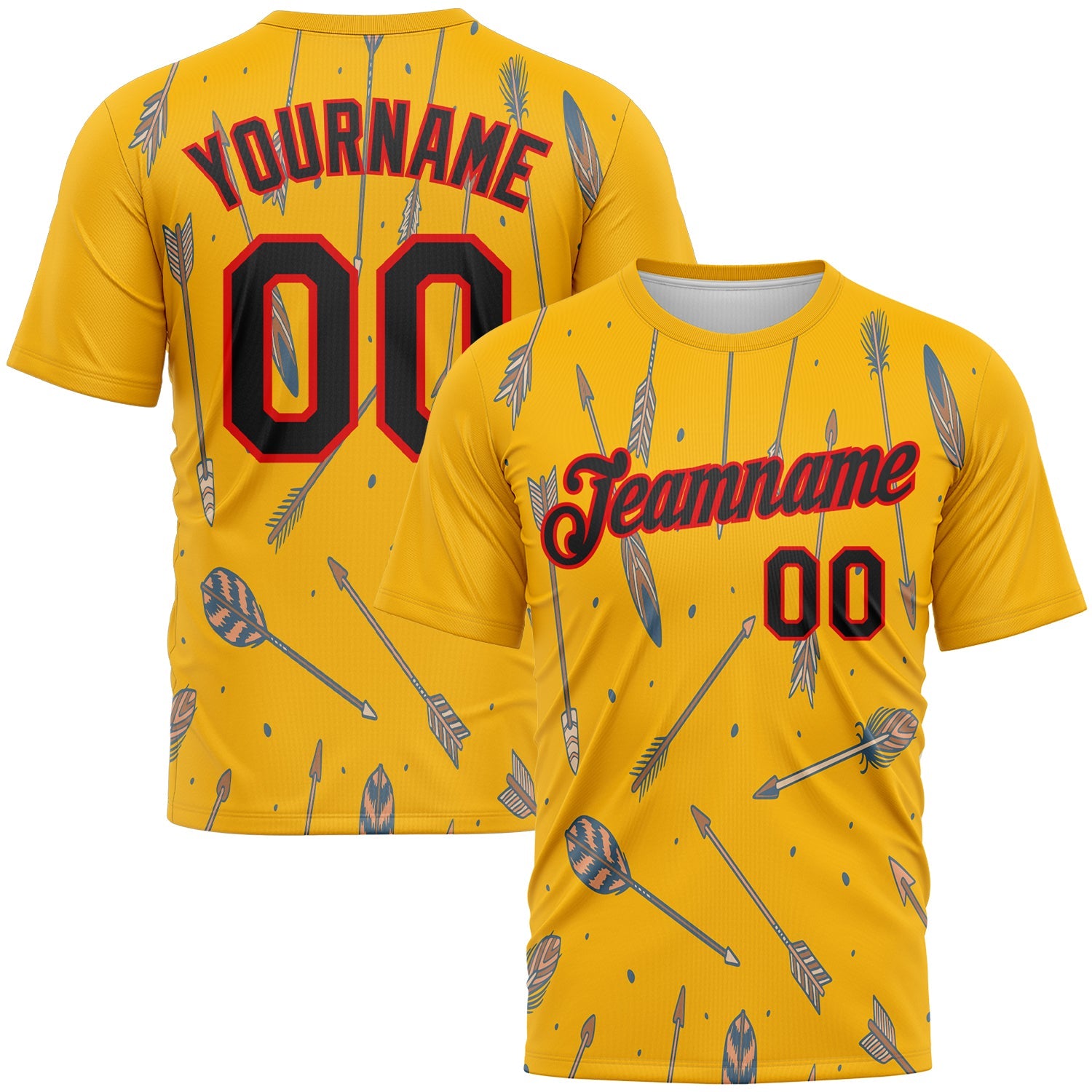 Custom Gold Black-Fire Red 3D Pattern Design Arrow Archery Bow Target Performance T-Shirt