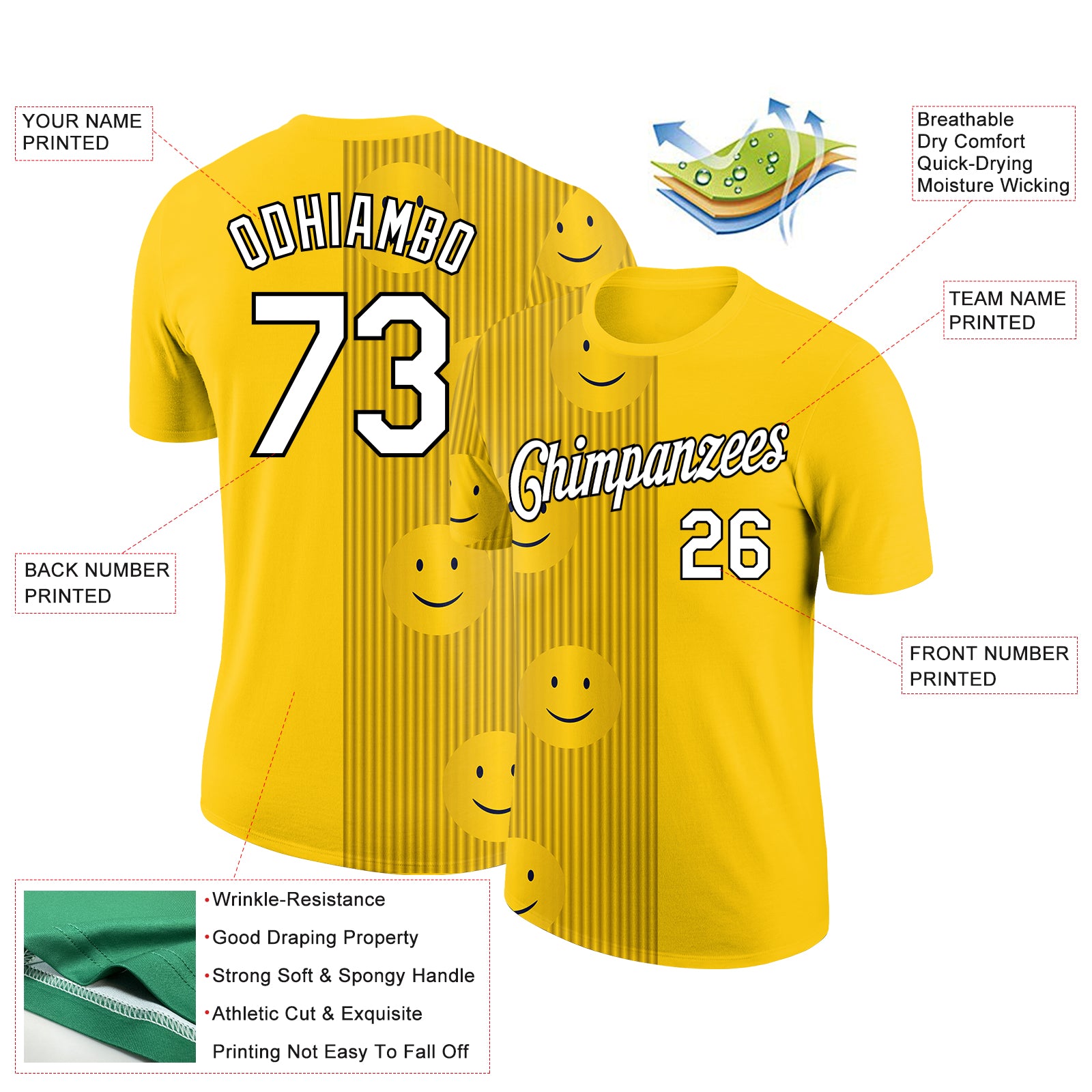Custom Gold White-Black 3D Pattern Design Smile Emoji Performance T-Shirt